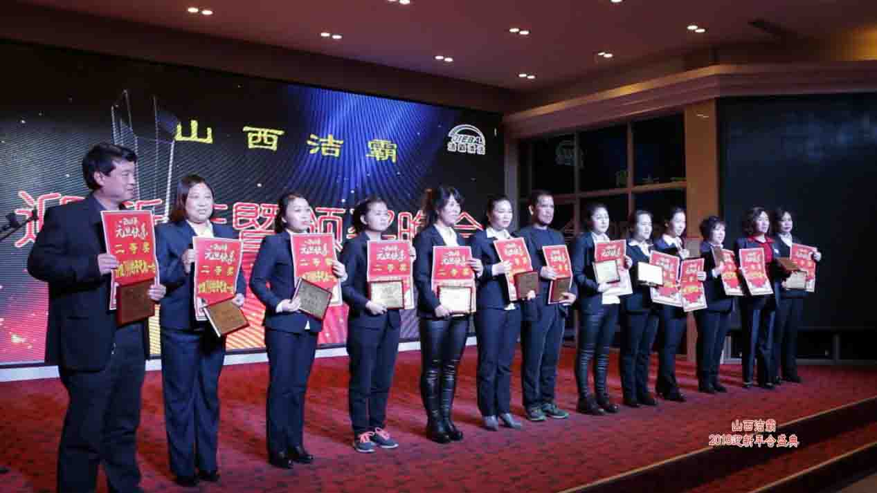 潔霸公司一直以來始終堅(jiān)持“服務(wù)鑄就品牌,專業(yè)鑄就權(quán)威”的經(jīng)營(yíng)理念,在這次的年會(huì)現(xiàn)場(chǎng),公司同時(shí)也對(duì)員工進(jìn)行了表彰。首先由公司副總經(jīng)理史志霞宣讀2017年表彰決定及獲獎(jiǎng)名單,在這次表彰中公司設(shè)立了4個(gè)優(yōu)秀集體獎(jiǎng)和37個(gè)優(yōu)秀個(gè)人獎(jiǎng),并對(duì)獲獎(jiǎng)人員給予了精神上和物質(zhì)上的鼓勵(lì),隨著獎(jiǎng)項(xiàng)的頒布不斷地掀起年會(huì)的高潮。
