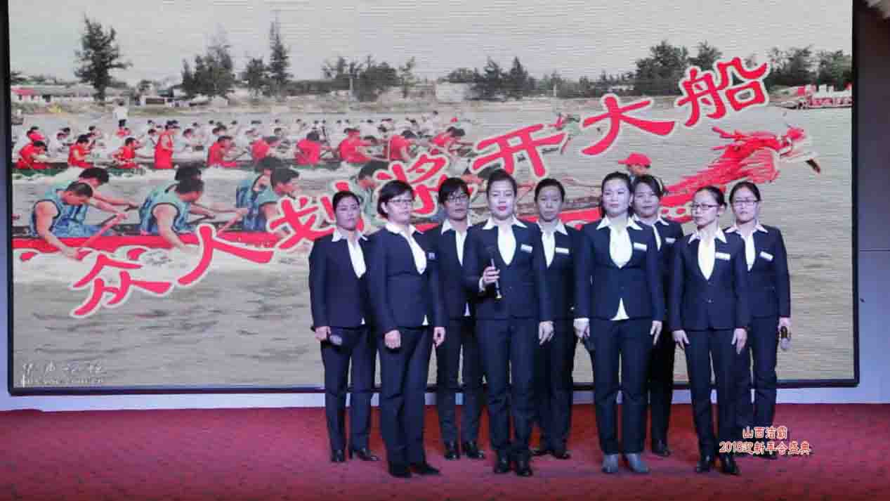 在舞蹈《紅紅對(duì)聯(lián)火火的歌》的喜慶氛圍中拉開了年會(huì)序幕