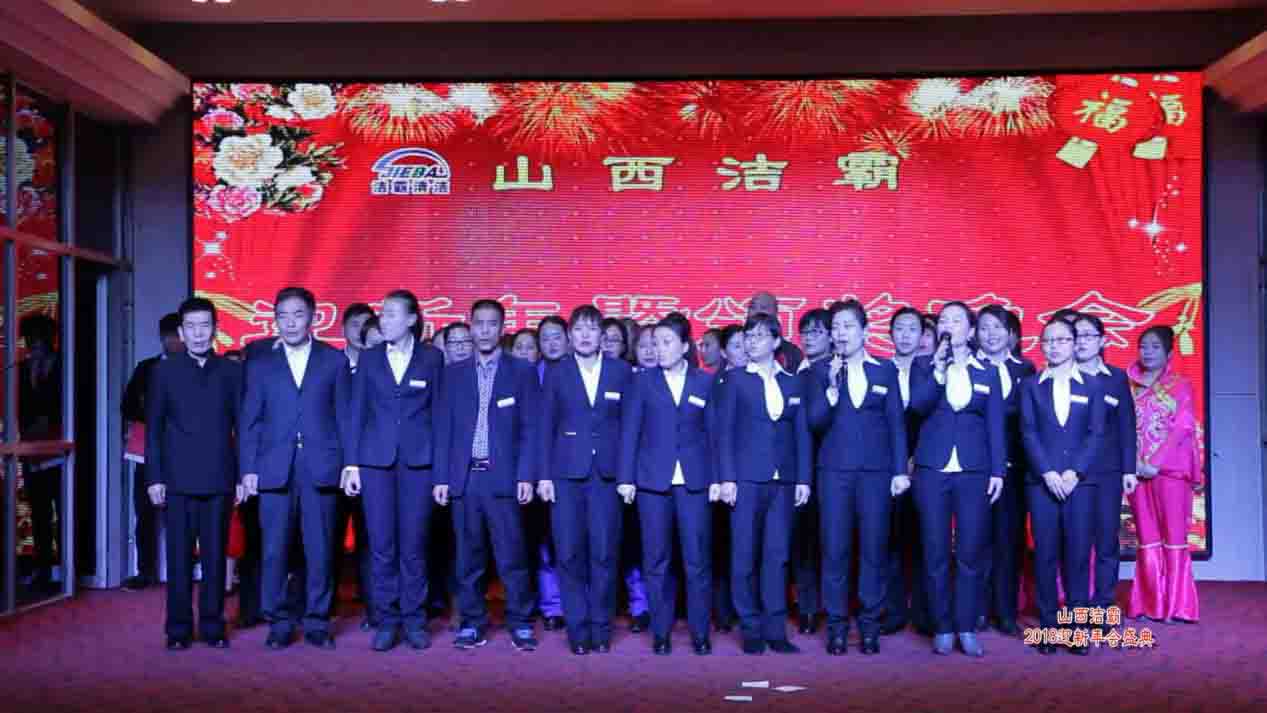 時(shí)光飛逝,歲月更迭,轉(zhuǎn)眼間忙碌的2017年已經(jīng)過去,充滿希望的2018年向我們走來。山西潔霸已經(jīng)走過了18個(gè)春夏,新的一年,孕育著新的目標(biāo)和希望,山西潔霸2018年迎新年年會(huì)盛典于2018年1月1日在芙蓉大酒店隆重舉行。公司領(lǐng)導(dǎo)、同事以及公司各戰(zhàn)略合作伙伴共聚一堂。