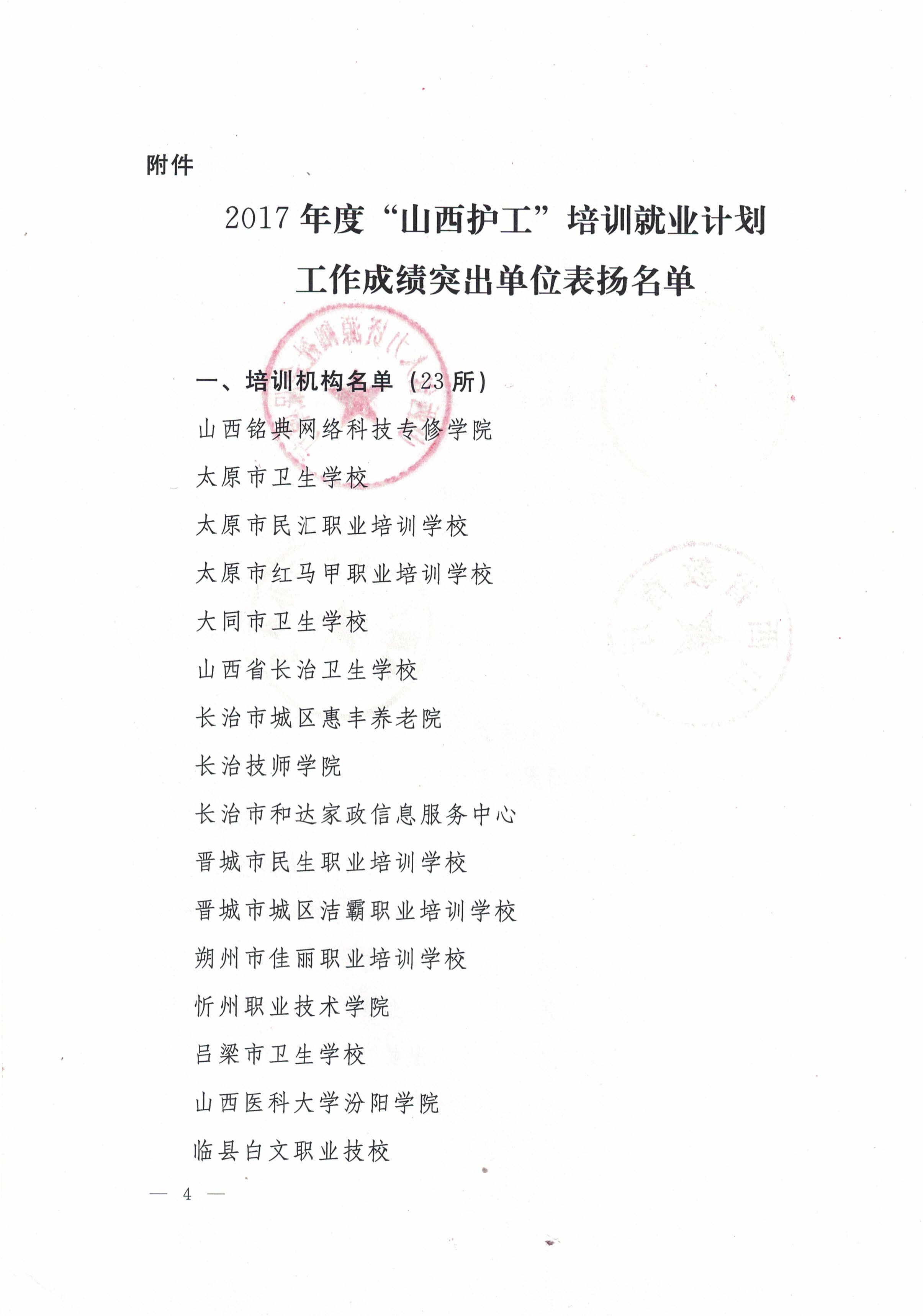 晉城市城區(qū)潔霸職業(yè)培訓(xùn)學(xué)校在2017年的“山西護(hù)工”培訓(xùn)計(jì)劃中成績斐然,于2018326日獲得了2017年度“山西護(hù)工”培訓(xùn)就業(yè)計(jì)劃工作成績突出單位的表彰。