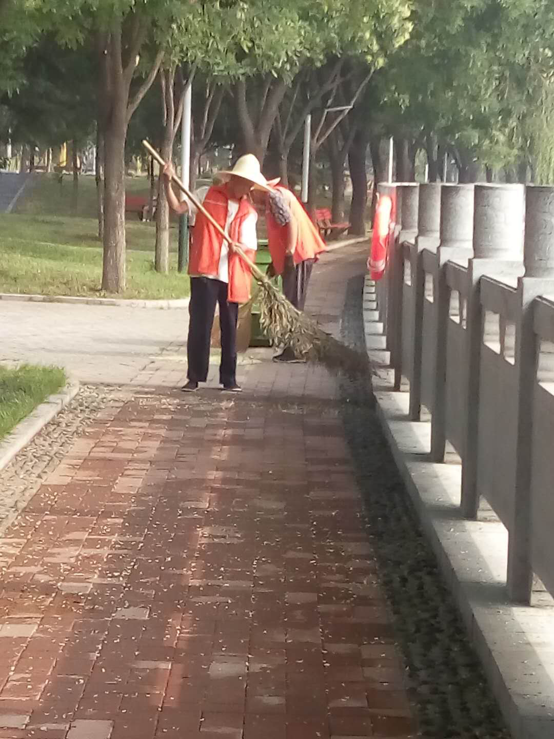專注、認真的清掃路面,一絲一毫也不漏掉