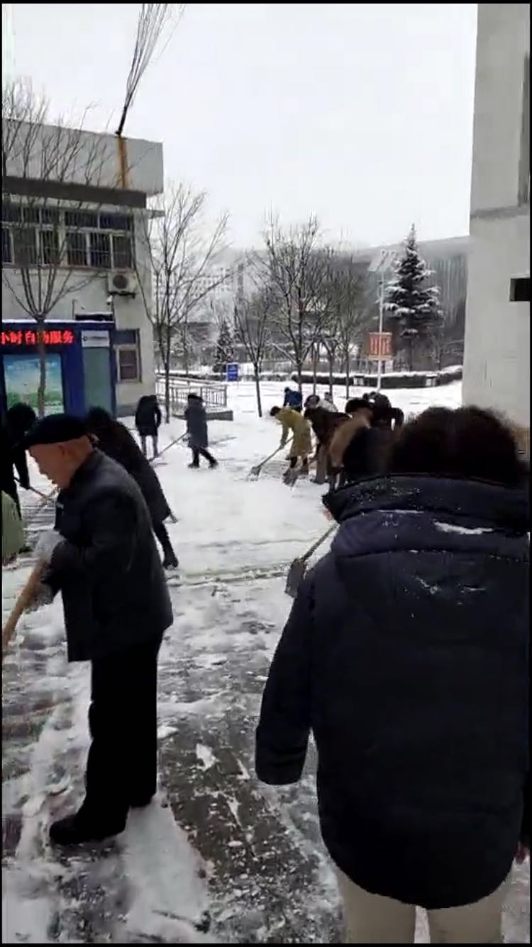 為保障大家出行安全,認(rèn)真鏟除地面殘冰。