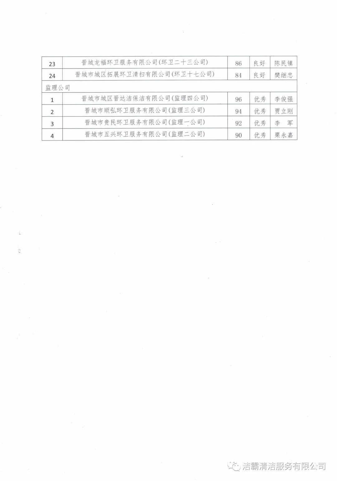 2020年10月28日—10月30日,晉城市城區(qū)市容環(huán)衛(wèi)中心由中心督查室牽頭組織,中心班子成員分別帶隊,機關全體人員參加,對各作業(yè)公司道路清掃路段、垃圾收集站(點)和公廁采用交叉檢查和隨機抽查的方式對24個作業(yè)公司的環(huán)境衛(wèi)生作業(yè)質量和4個監(jiān)理公司的日常檢查情況進行了考核。晉城市潔霸清潔服務股份有限公司所屬的環(huán)衛(wèi)四公司分數最高,名列第一。