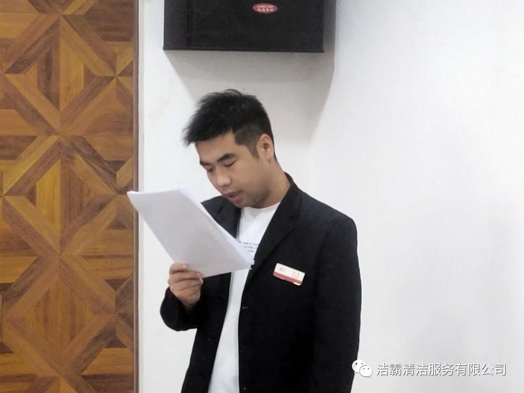 山西潔霸物業(yè)管理有限公司經(jīng)理李廣忠、會計張青霞、出納王頓花、晉城市合眾力勞務派遣有限公司經(jīng)理成濤、出納劉雨星、晉城市潔霸清潔服務股份有限公司工程部文員張陽楠、綜合辦公室車輛管理員呂衛(wèi)東、人力資源部文員呂利清、山西百潔物業(yè)服務有限公司出納王笑依次上臺作了述職匯報。