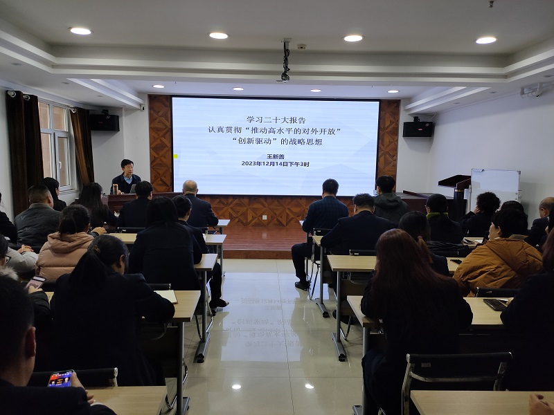 12月14日下午,公司舉辦“對外開放”“創(chuàng)新驅(qū)動”專題講座,邀請市商務(wù)局原局長王新善圍繞二十大報告的重點內(nèi)容“推動高水平對外開放”“創(chuàng)新驅(qū)動”等進(jìn)行宣講。