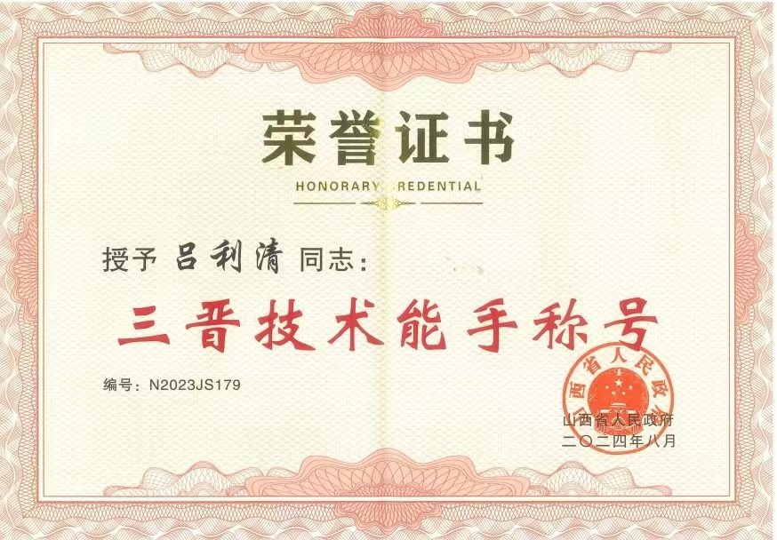 | 我公司呂利清榮獲“三晉技術能手”稱號 |